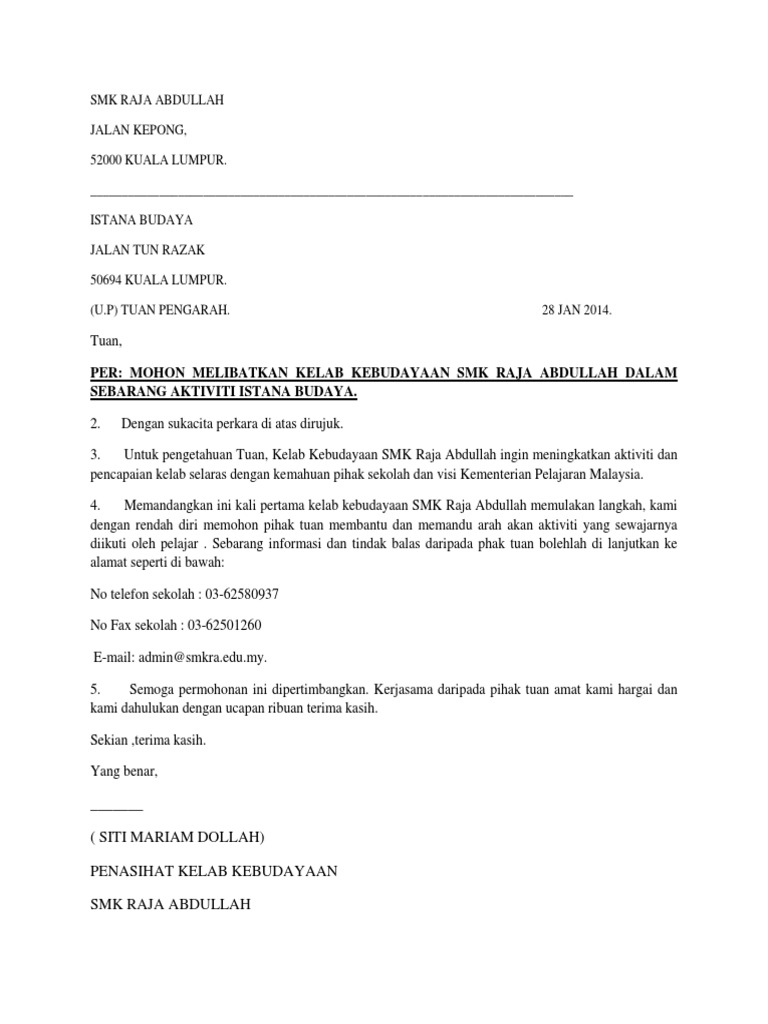 Surat Rasmi Untk Istana Budaya