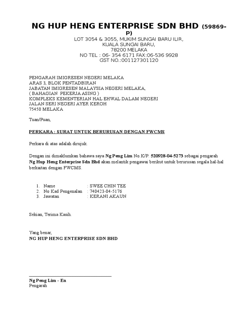 Surat Pemberitahuan Jabatan Buruh Yang Tidak Memiliki Lesen Bagi