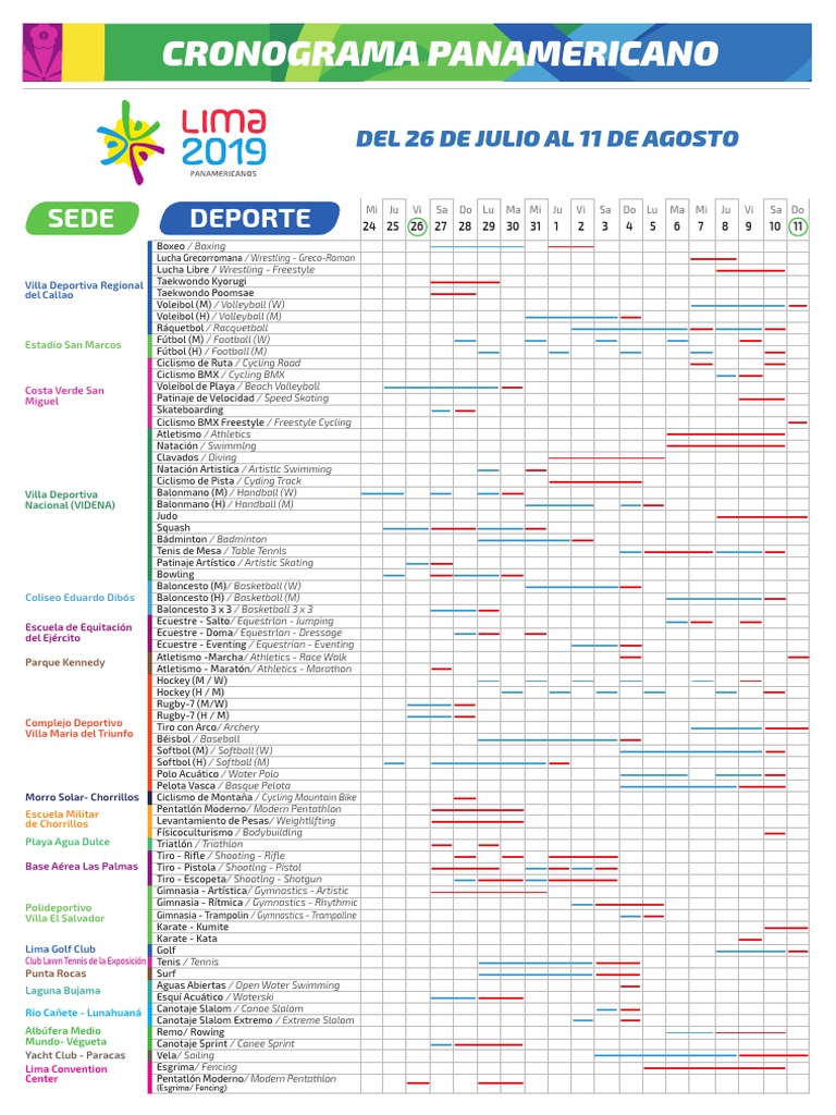 Cronograma De Competencias De Los Juegos Panamericanos Lima 2019