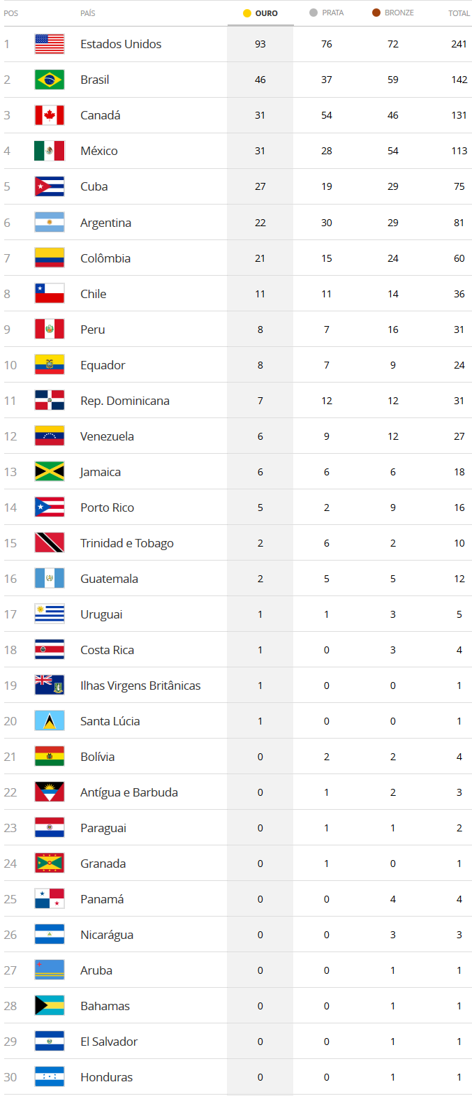 Fox Sports Brasil De On Twitter Quadro De Medalhas Assim Ficou O Ranking No Final Do 11 Dia Dos Jogos Pan Americanos De Lima