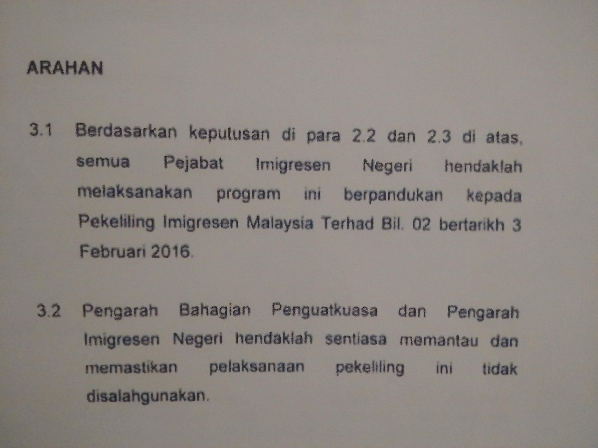 Pekeliling Imigresen Malaysia Terhad 2016