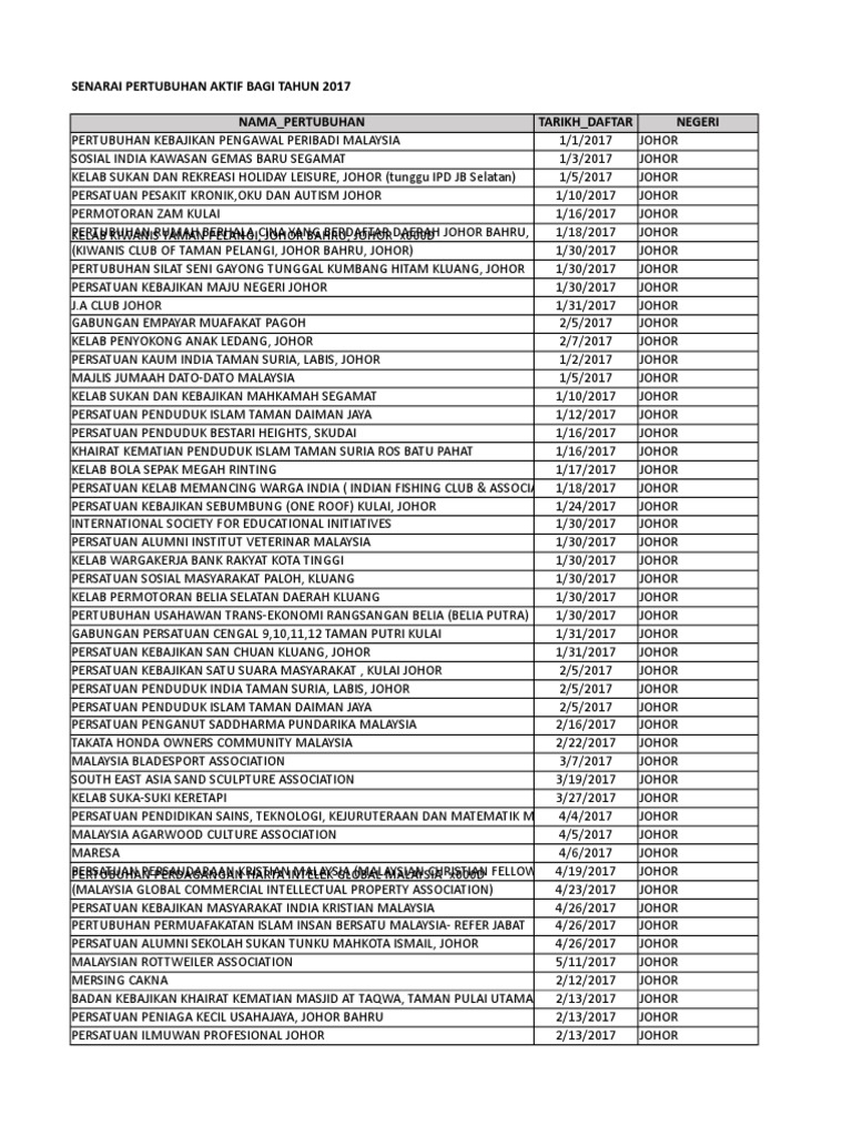 Senarai Pertubuhan Aktif 2017 1 Xlsx