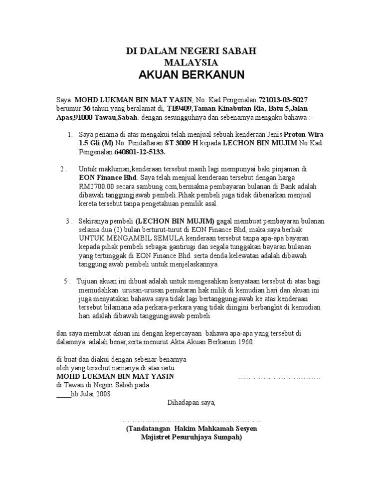 Akuan Berkanun Di Dalam Negeri Sabah Malaysia
